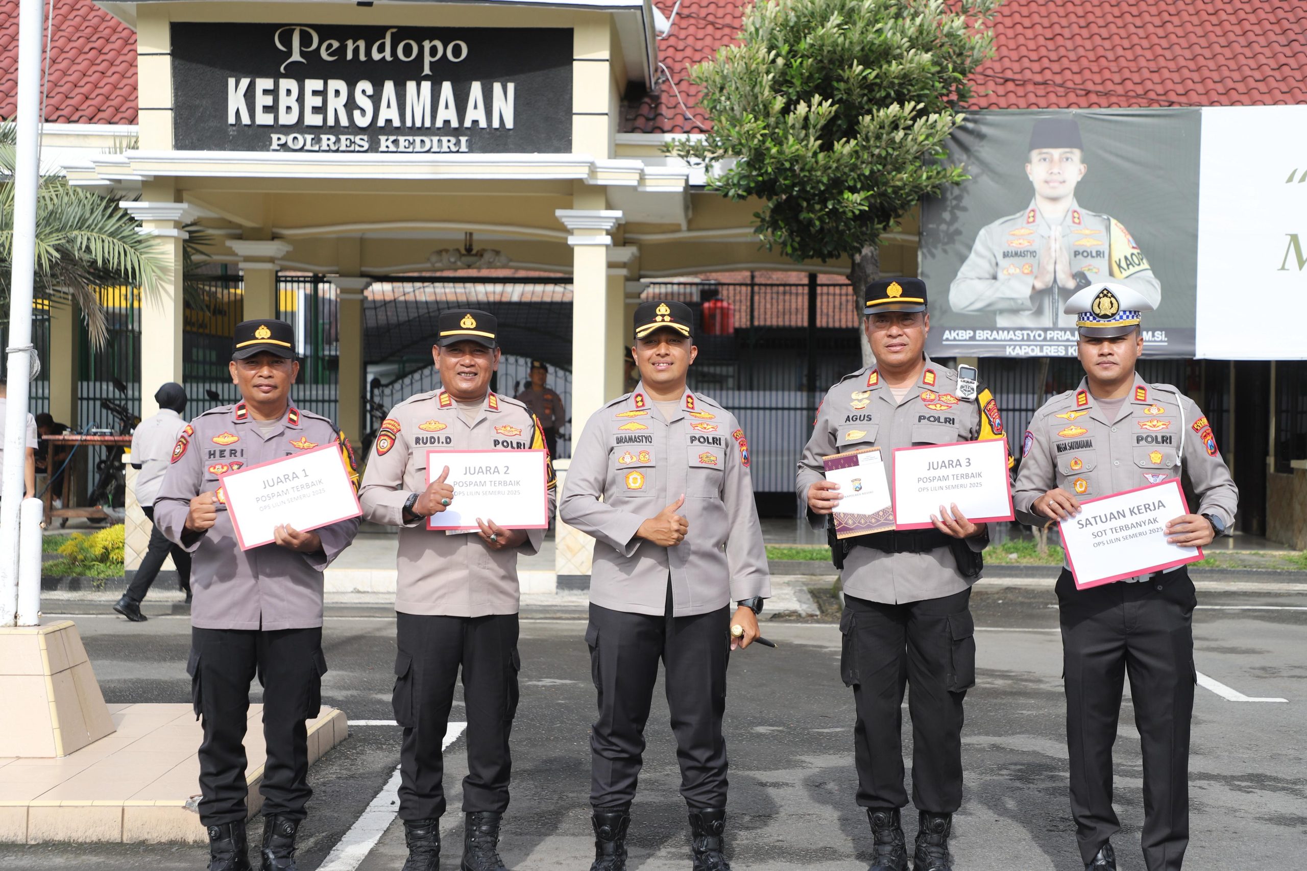 Sebagai bentuk apresiasi, Kapolres Kediri memberikan reward kepada personel berprestasi selama Operasi Lilin Semeru 2025, termasuk penginputan aplikasi SOT terbanyak dan Pos Pengamanan terbaik.