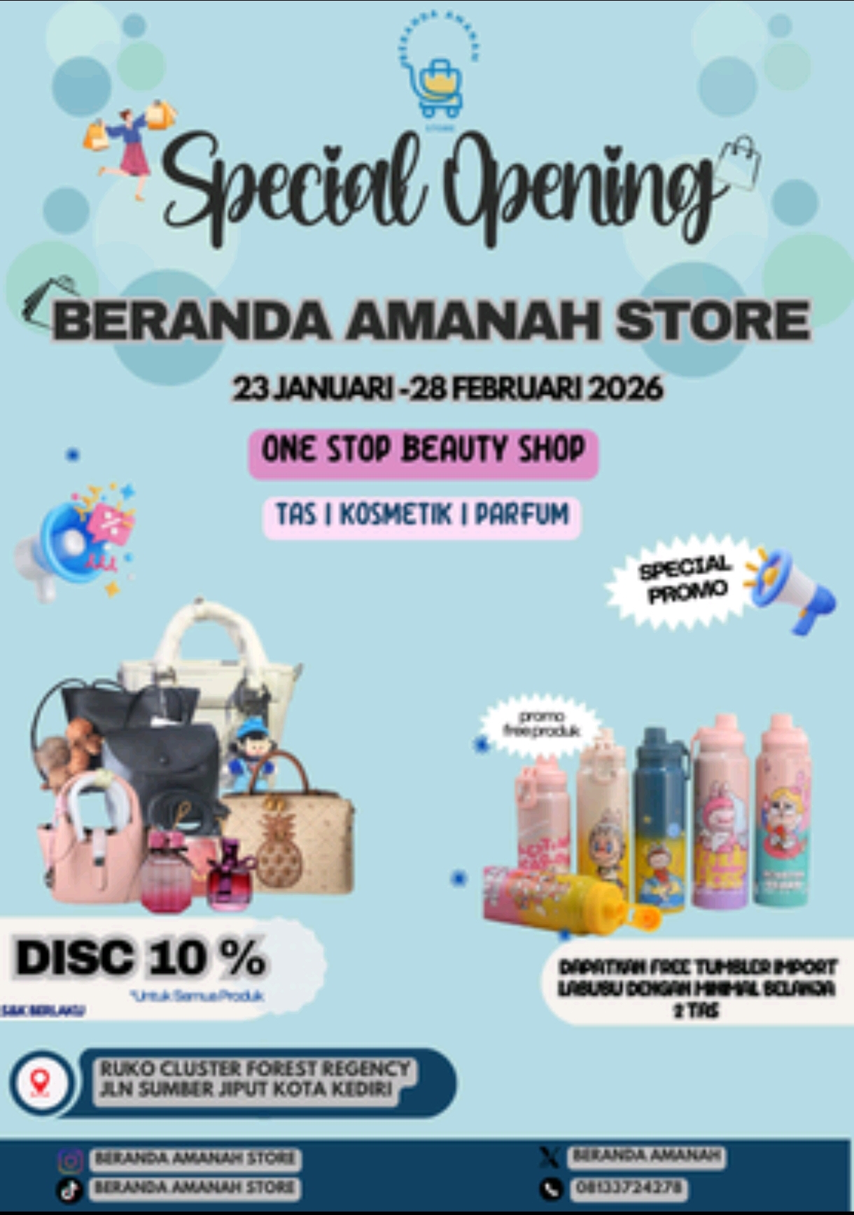 Beranda Amanah Store Pilihan dan Penuhi Hidup Anda… RedaksiJanuari 22, 2026Januari 22, 202622 Dilihat Post Views: 22 Pos terkaitBUS ANTARKOTA REM BLONG TABRAK ANTREAN KENDARAAN DI SIMPANG EMPAT MUNING KEDIRI, 4 ORANG LUKA-LUKABUNUH IBU DENGAN MENUSUK, ANAK KANDUNG DIDUGA SEBAGAI PELAKUBursa Transfer Liga 1: Persik Kediri Resmi Lepas Williams Lugo dan Pinjamkan Sylvain AtiedaPILOT PROJECT BINLAT DAN LABORATORIUM KARAKTER JATI DIRI BANGSA RESMI DILUNCURKAN 25 JANUARI2.463 Pasangan di Kediri Cerai Sepanjang 2025 Akibat Masalah Ekonomi, Hutang Jadi Pemicu UtamaGus War Minta Pemerintah Tutup Pabrik Miras: Razia di Hilir Tak Cukup, Jangan Tergiur Pajak