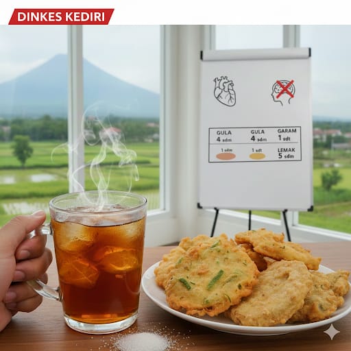 Kediri,Montera.co.id– Kebiasaan sederhana seperti menyeruput teh manis atau menyantap gorengan setiap hari ternyata menyimpan risiko besar bagi kesehatan. Dinas Kesehatan (Dinkes) Kabupaten Kediri memperingatkan masyarakat bahwa pola makan tinggi Gula, Garam, dan Lemak (GGL) adalah “bom waktu” penyakit kronis yang kini mulai menyerang usia produktif.