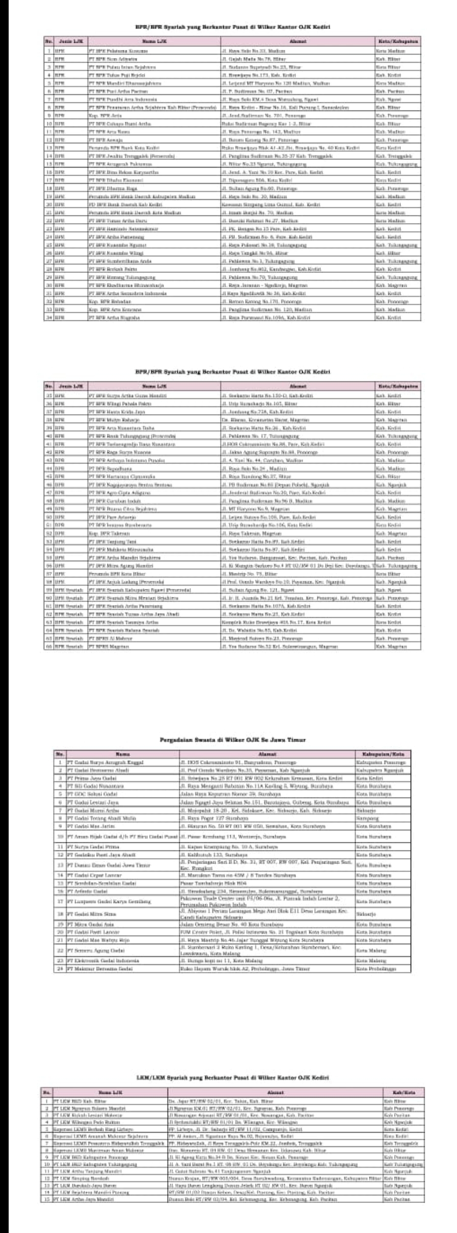 Kediri,montera.co.id – Pergadaian ilegal adalah badan usaha yang menjalankan kegiatan gadai tanpa izin resmi dari Otoritas Jasa Keuangan (OJK). Usaha gadai yang sah adalah yang memiliki izin dari OJK, baik perusahaan pemerintah seperti PT Pegadaian (Persero) maupun perusahaan swasta yang telah mendaftar dan memiliki izin usaha.
