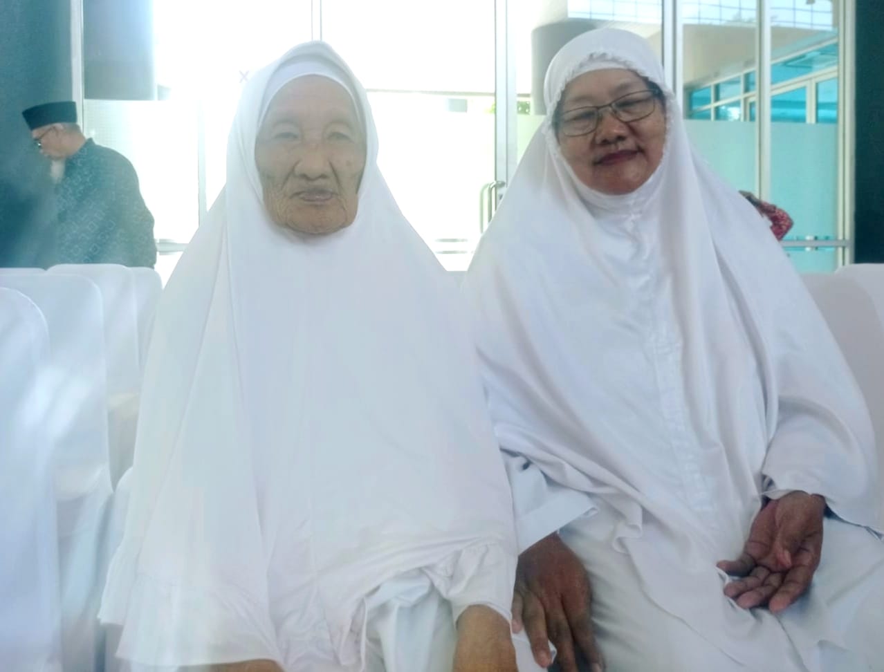 “Saya bersyukur ibu sehat terus. Informasinya tadi, ibu adalah jamaah haji tertua di Indonesia tahun ini. Mohon doanya agar kami semua sehat saat berangkat maupun pulang,” ucap Muidah sambil menggandeng tangan sang ibu dengan penuh kasih sayang.
