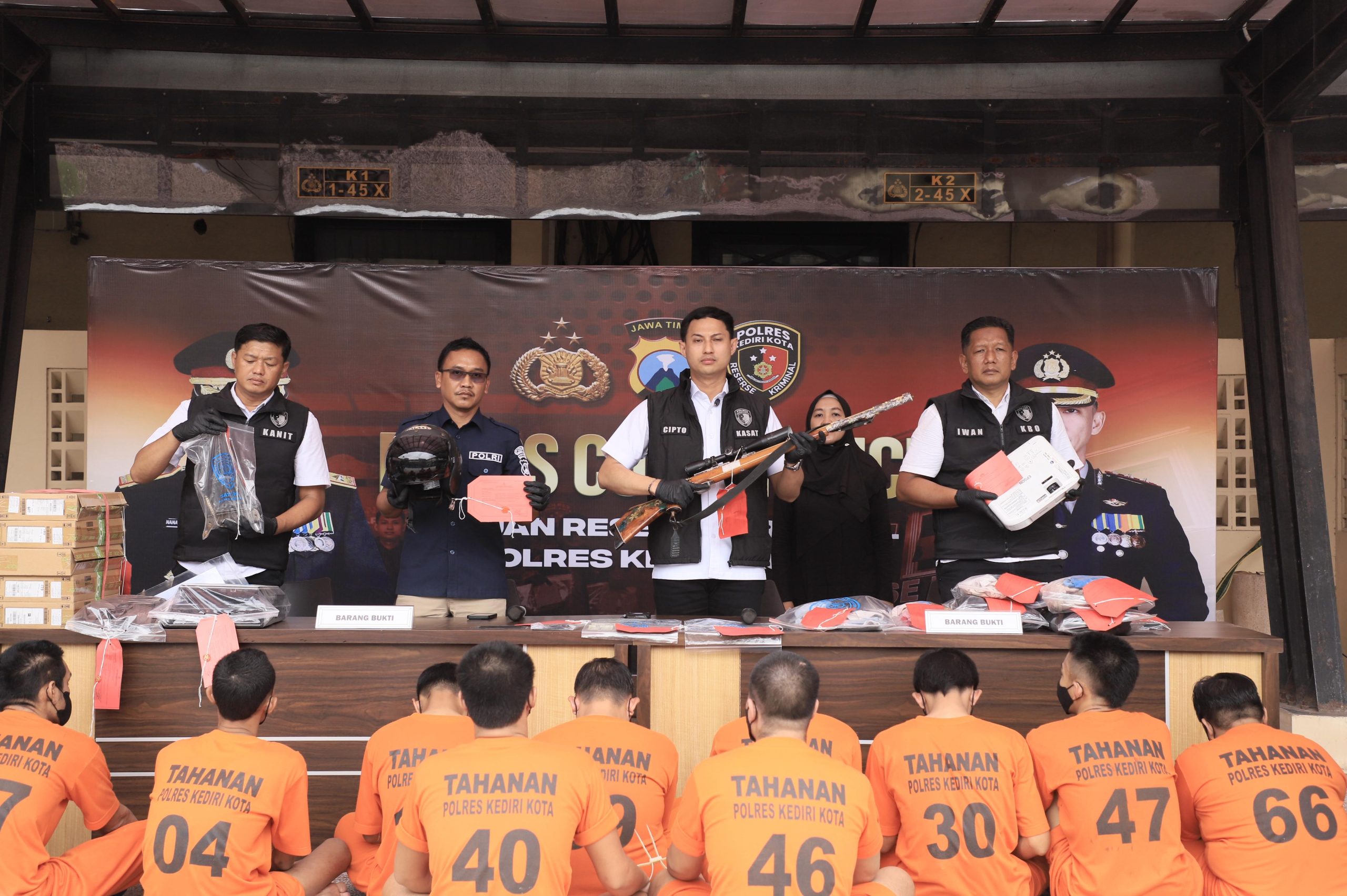 Dari delapan perkara yang diungkap—meliputi Pencurian Kendaraan Bermotor (Curanmor), Pencurian dengan Pemberatan (Curat), hingga penganiayaan/kejahatan jalanan—Polres Kediri Kota telah mengamankan dan menetapkan sembilan orang sebagai tersangka.