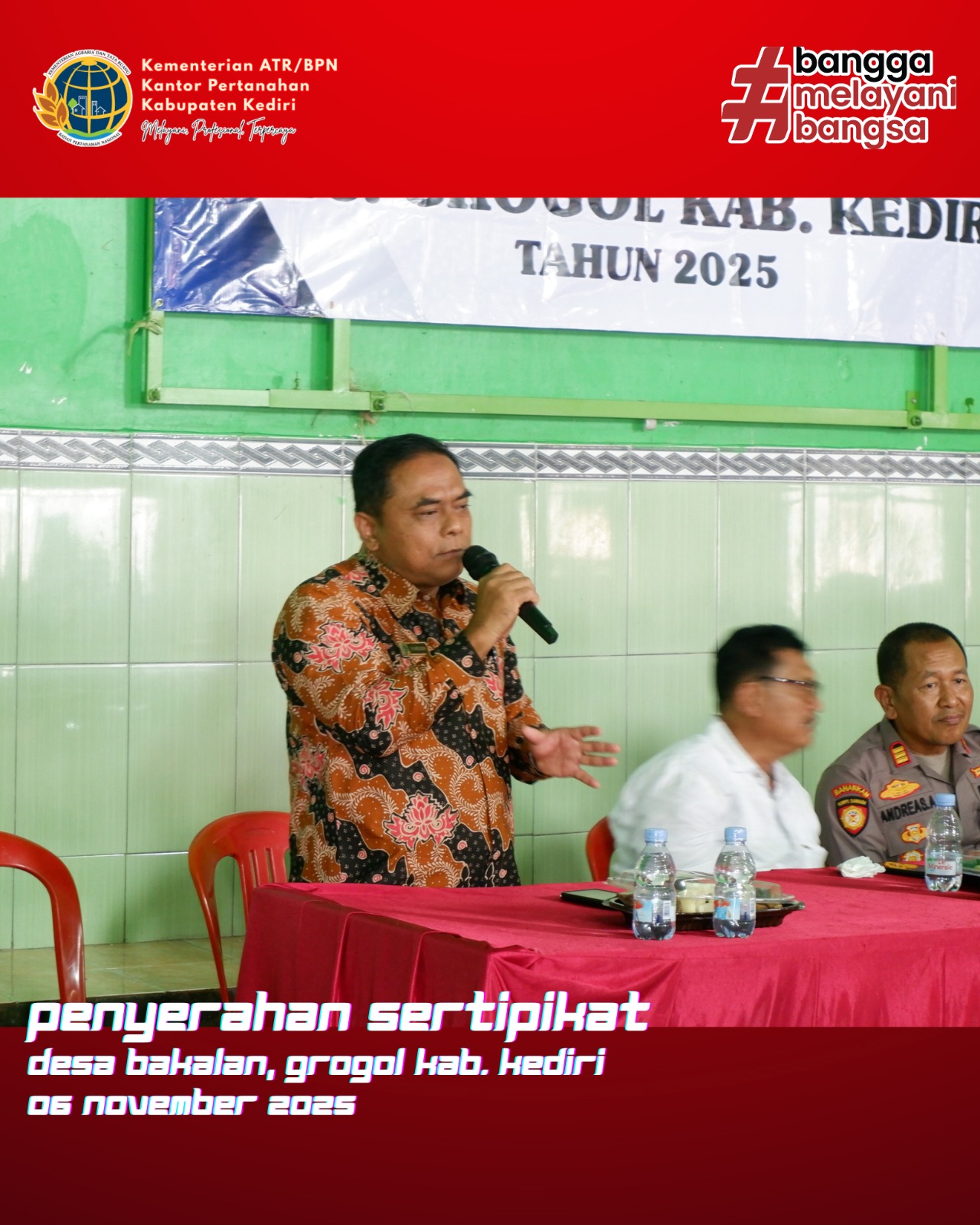Hello Ndha #SobATRBPN, pada hari Kamis(06/11/2025) lalu kami jajaran kantah kabupaten kediri melaksanakan giat penyerahan sertipikat PTSL 2025 ndha, sebanyak 400 dokumen sertipikat diserahkan pada penyerahan kali ini ndha, berlokasi pada balai desa bakalan, giat berjalan dengan lancar