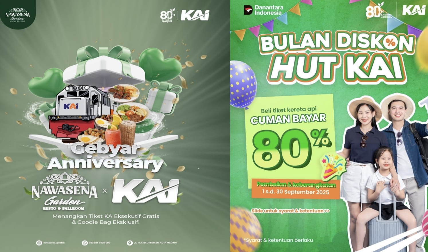 “Promo dalam rangka menyambut HUT ke-80 KAI ini sebagai bentuk loyalty program sekaligus meningkatkan brand awareness, brand image, serta minat masyarakat menggunakan kereta api,” jelas Zainul.
